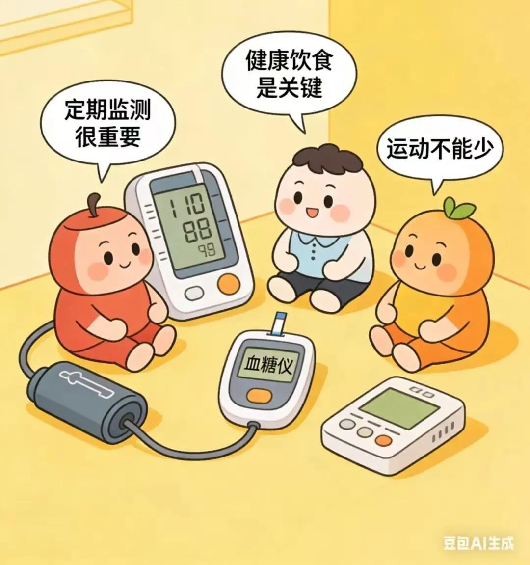 ④定期监测血压、血糖、血脂,主动体检,早发现早干预。身体不适及时就医,不拖延、不盲目自我药疗;