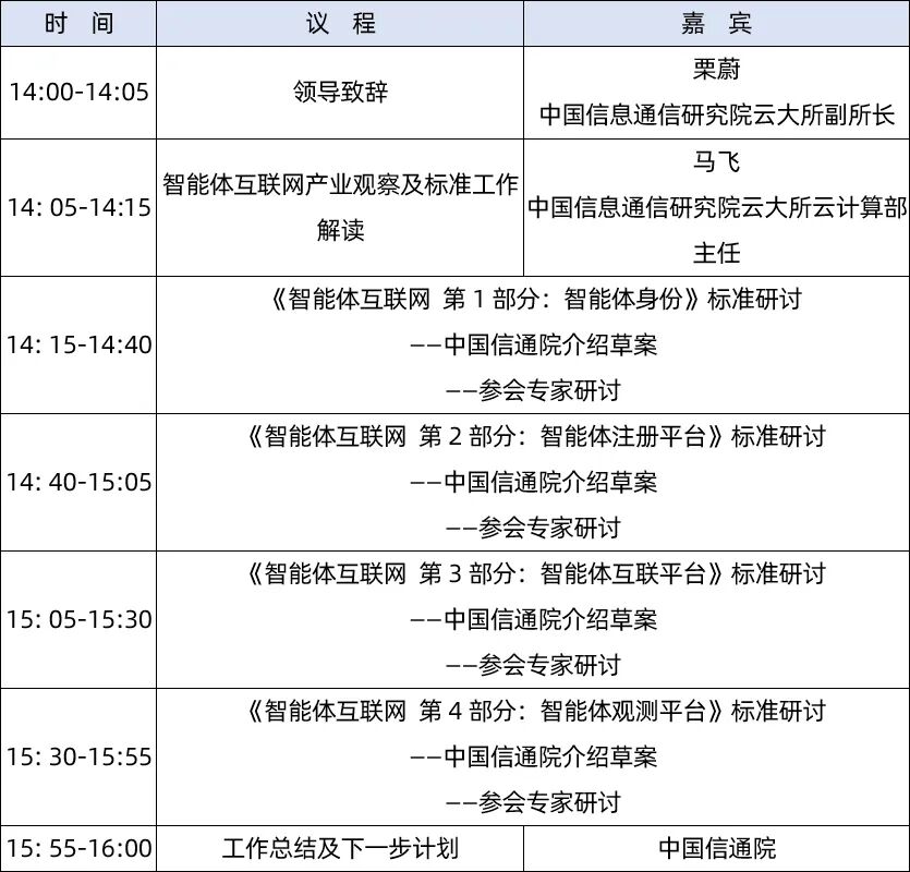 聚焦智能体身份、注册、互联、观测!中国信通院智能体互联网系列标准首次研讨会即将召开!