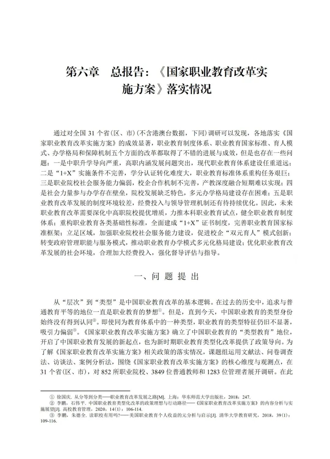 前期,研究团队历时3年,对全国31个省(区、市)开展了大规模调研,完成了“5份理论报告+4份实证报告+15份发展报告”的研究基础,最终形成《报告》,旨在总结提炼职业教育现代化建设的中国经验,构建具有中国特色的职业教育研究话语体系,对我国“十五五”时期职业教育现代化发展提供科学参考。