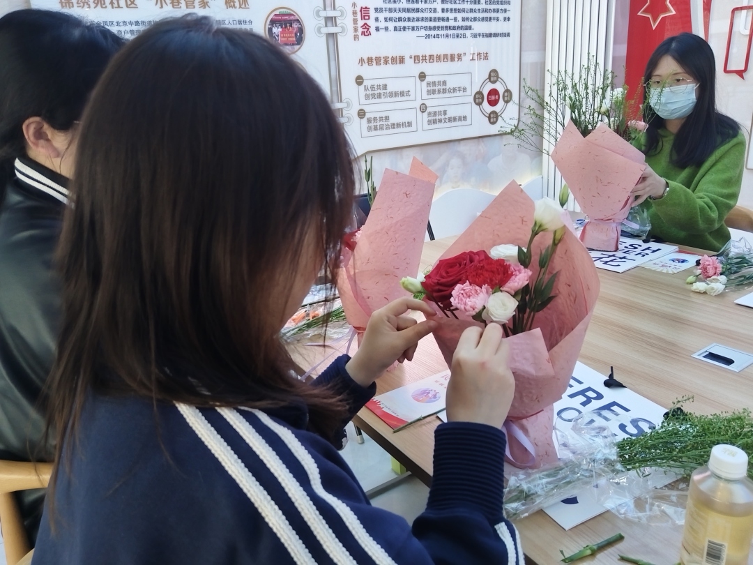 “这朵玫瑰代表爱自己,向日葵代表成长,咱们今天不赶时间,先跟自己待一会儿。”活动伊始,没有生硬的开场白,取而代之的是一场零基础插花体验。社区特意将参与者控制在5到8人,为的就是让每一位姐妹都有被看见的机会。