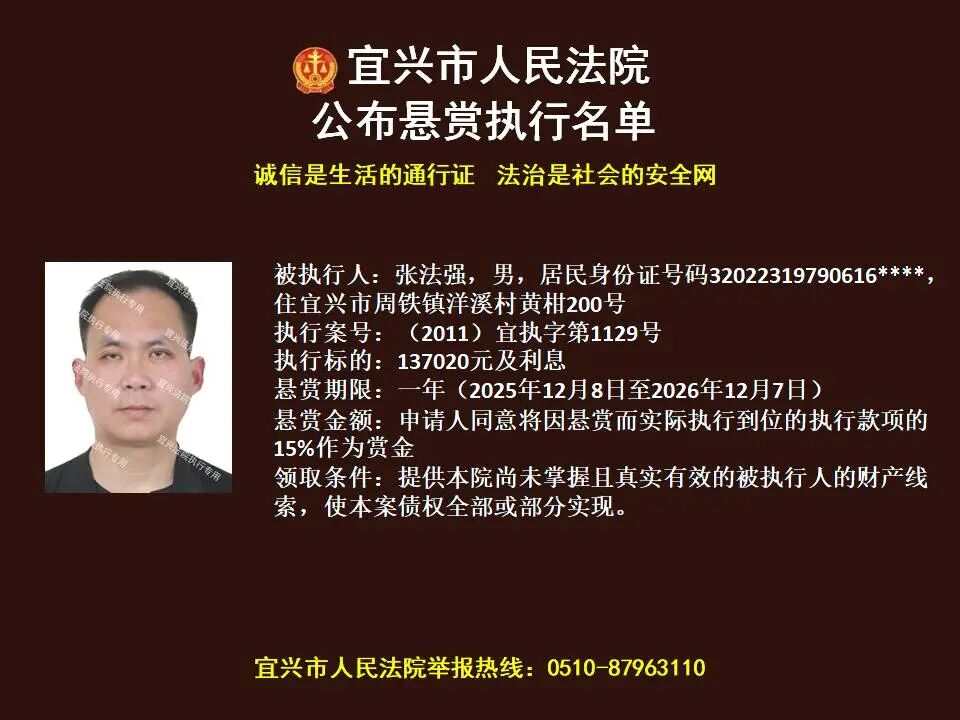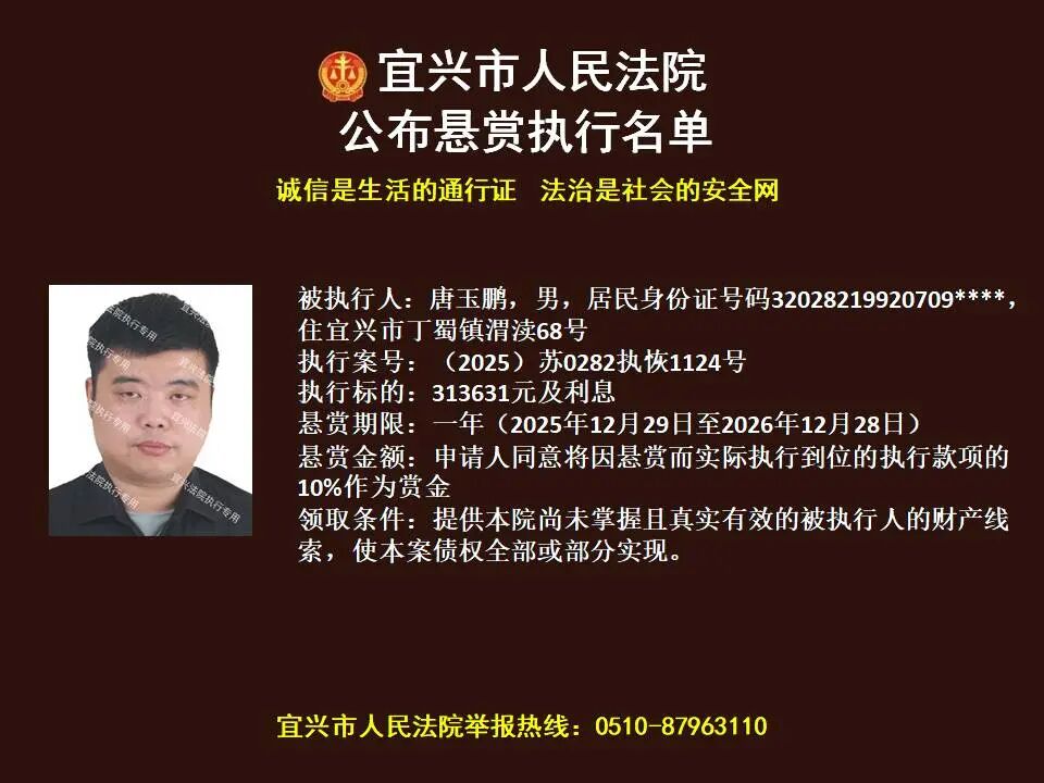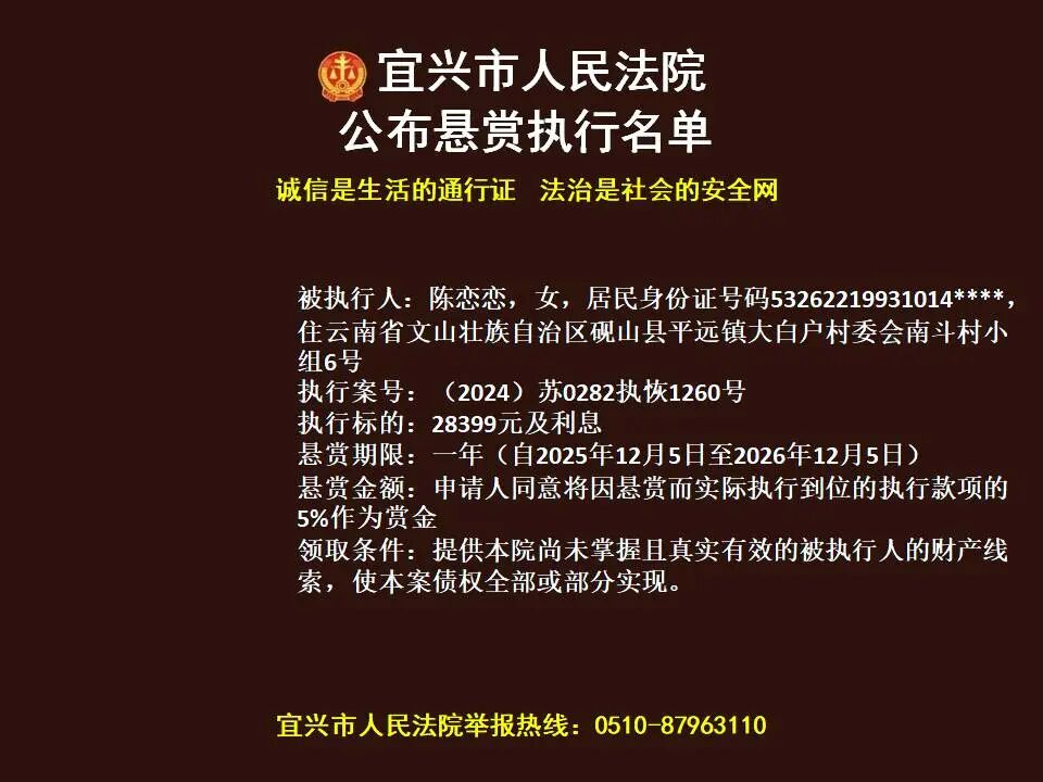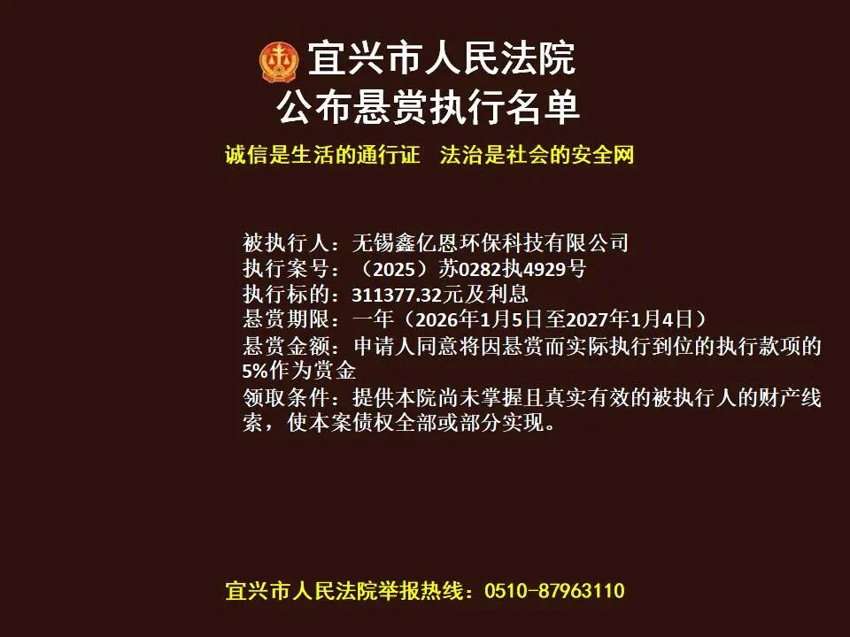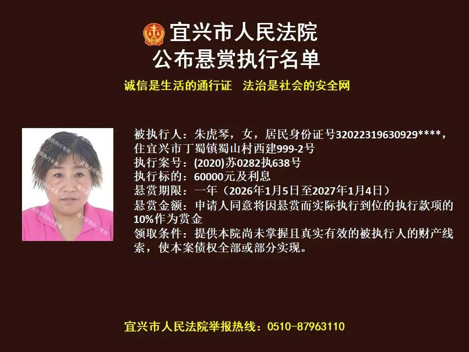 原标题:《第1869期 宜兴法院悬赏执行公告(2026年第4期)》