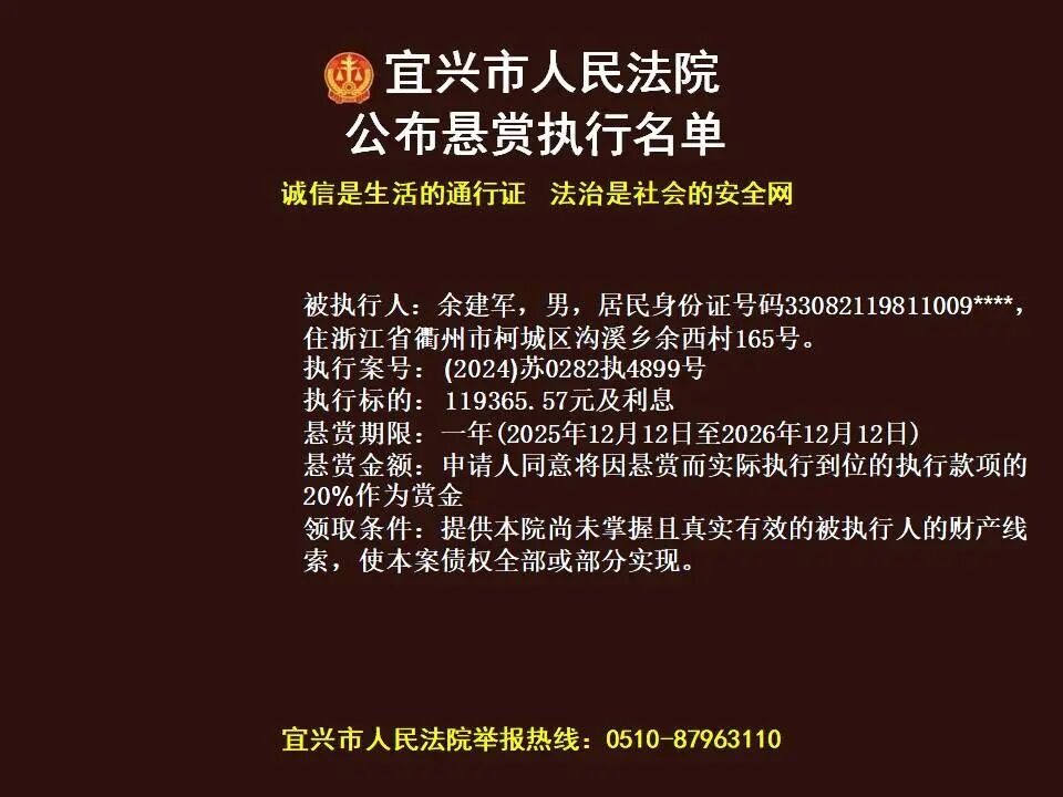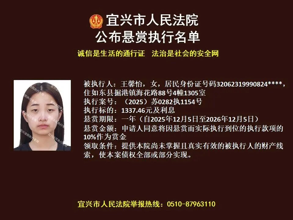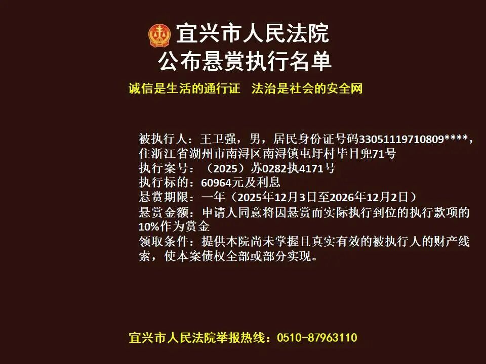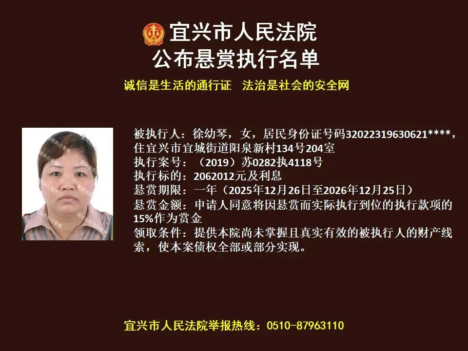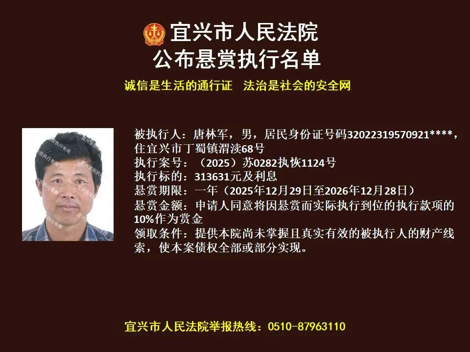 原标题:《第1869期 宜兴法院悬赏执行公告(2026年第4期)》