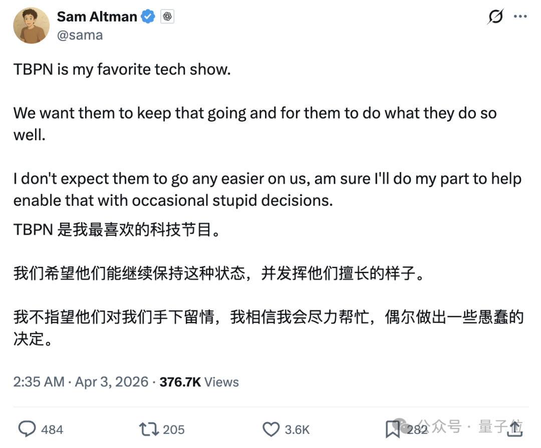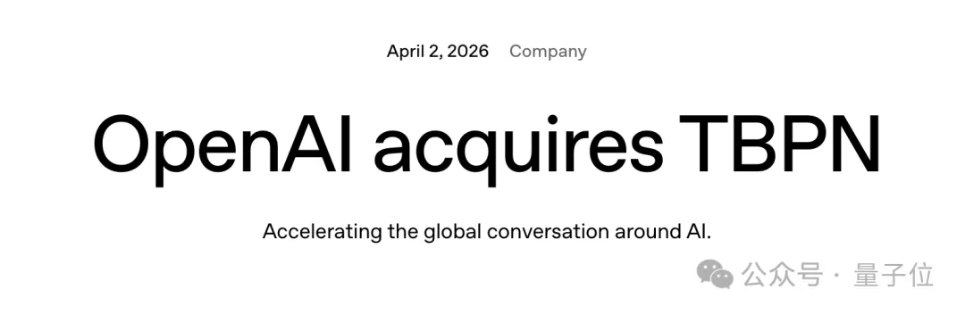 刚刚,OpenAI宣布收购「科技脱口秀」TBPN,目标是加速全球围绕AI的交流。