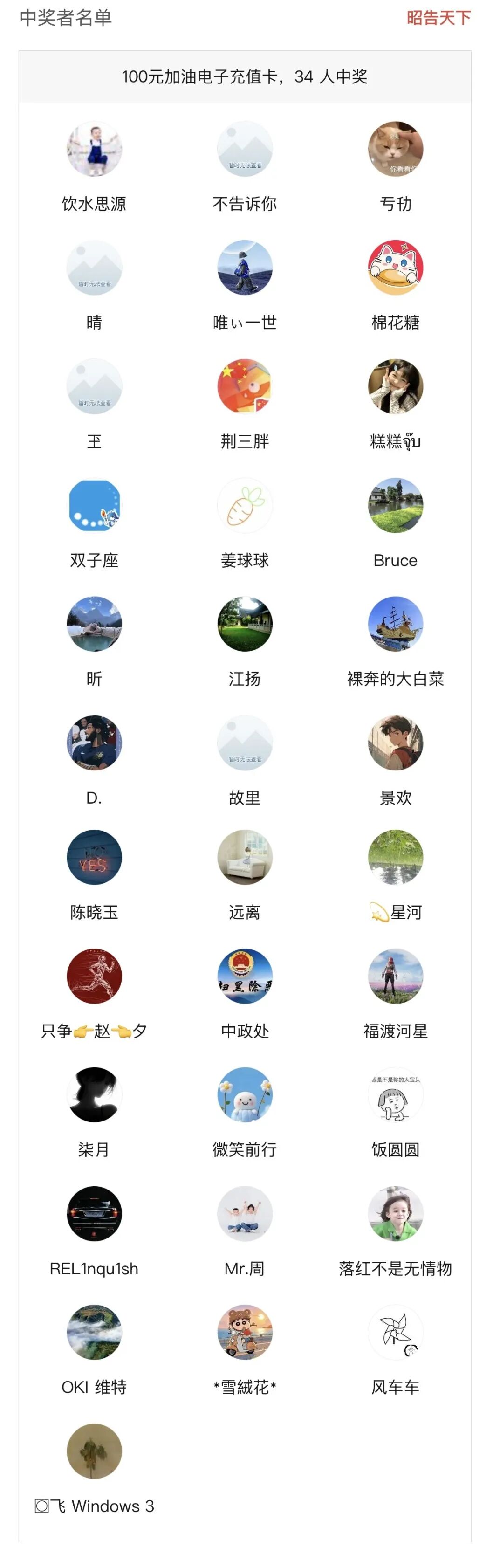 上期中奖名单