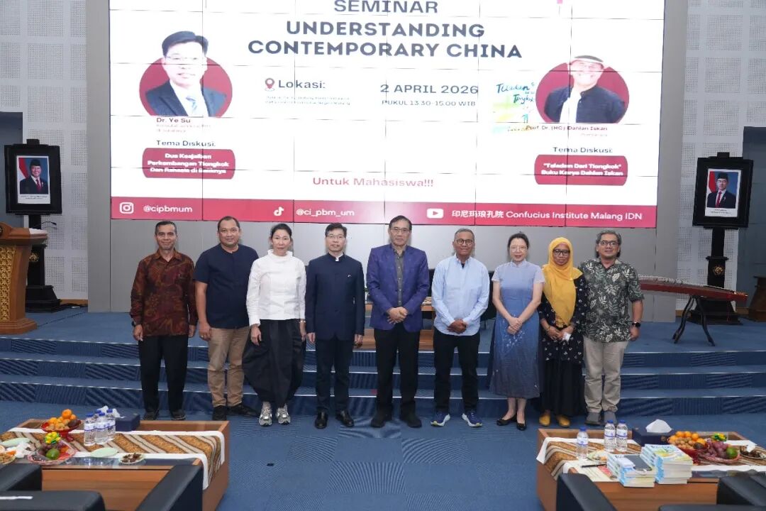 2026年4月2日,中国驻泗水总领事叶素出席玛琅国立大学主题为“读懂当代中国”的研讨会,就“十五五”规划及中国式现代化发表主旨演讲。印尼前国企部长、《迪斯威日报》创始人余世甘共同出席并发表演讲,玛琅国立大学校长哈里约诺及师生代表300余人出席。