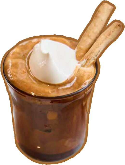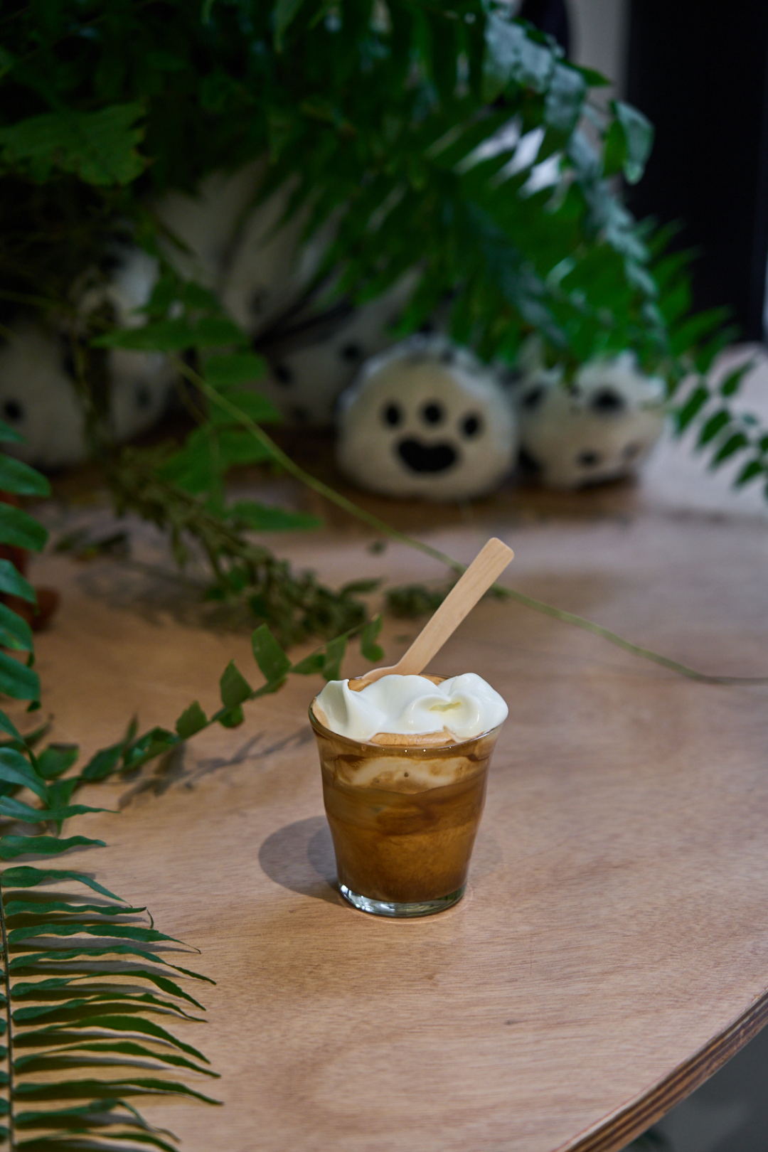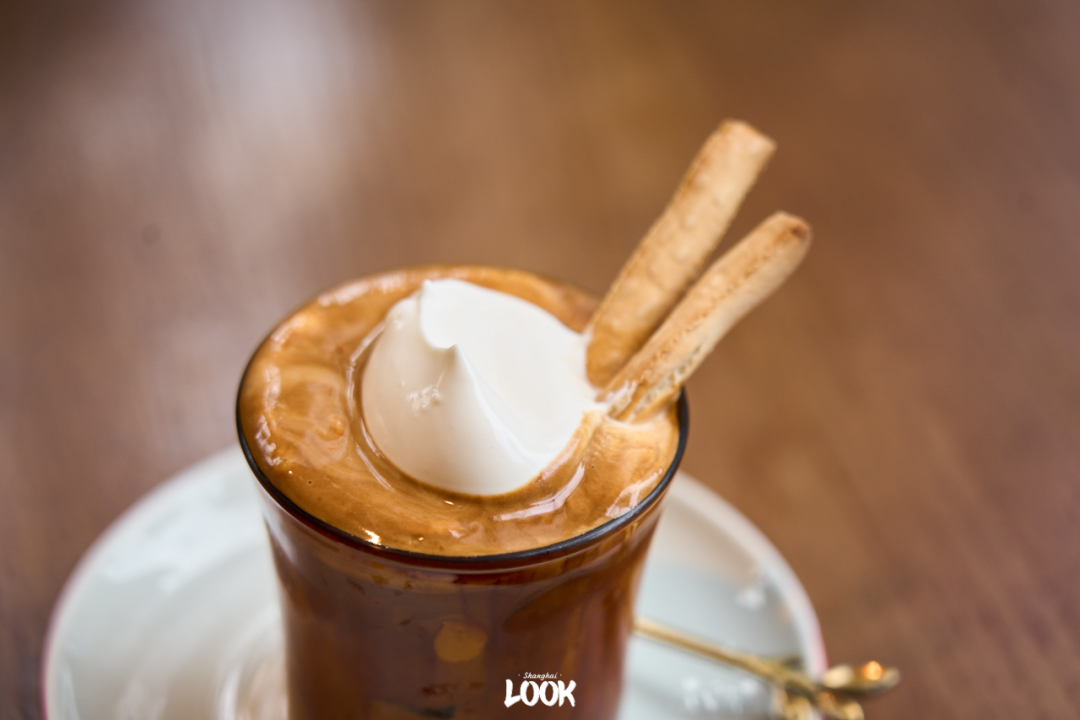 这杯咖啡其实也可以分两种方式去喝,第一种是先喝咖啡,喝的过程中掺一口奶油,这样的味道层次更丰富;第二种是先吃奶油,吃完奶油再喝咖啡,会更清爽。