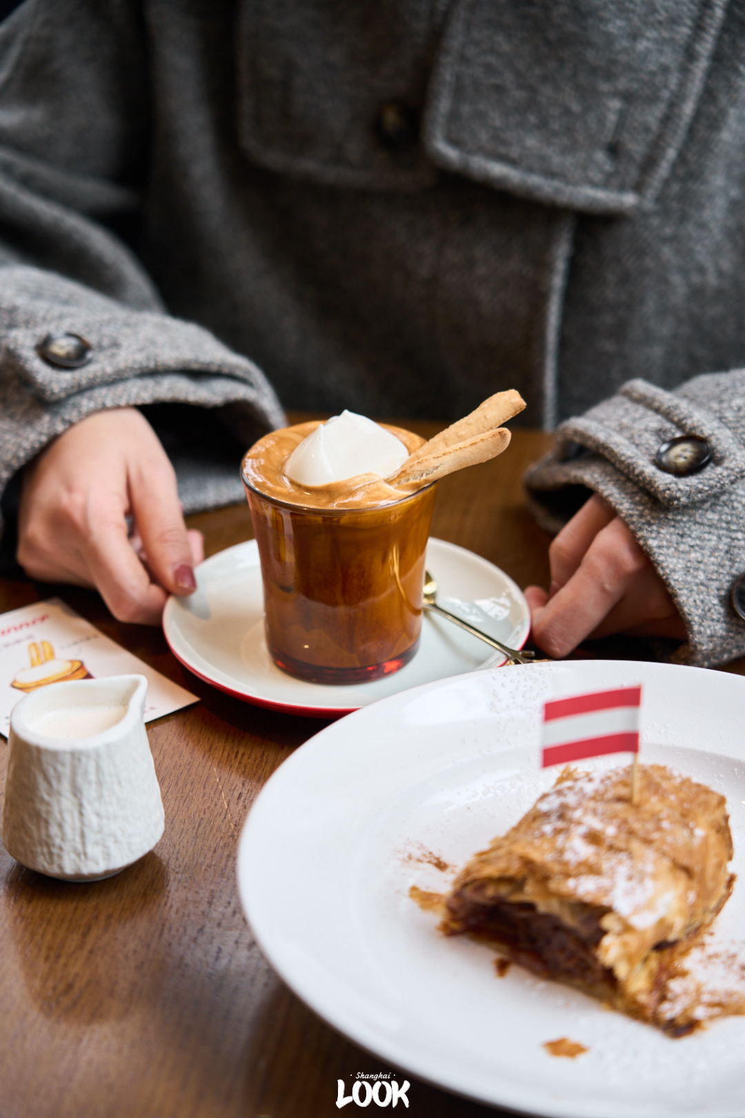 这可能是上海最早的一家维也纳咖啡,在奥地利餐厅里。搭配一份地道的奥地利甜品,是下午茶最惬意的一种选择。