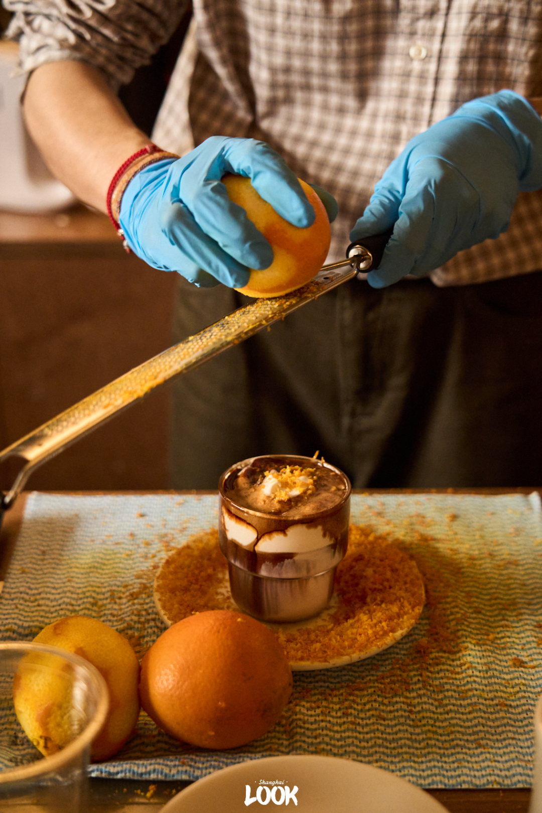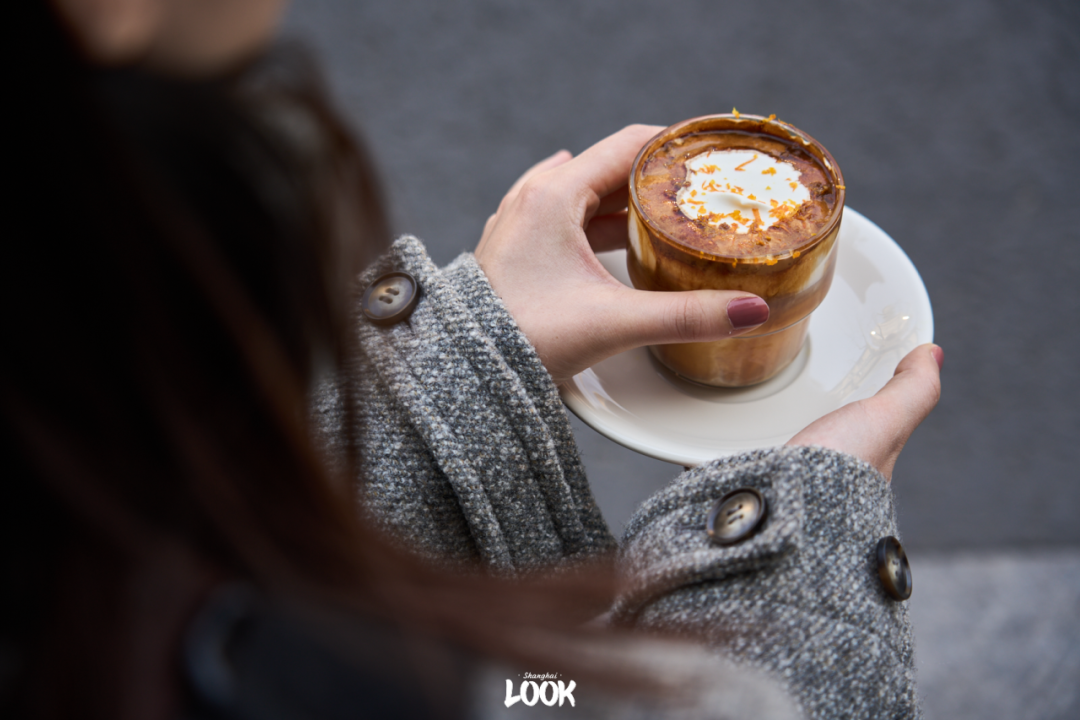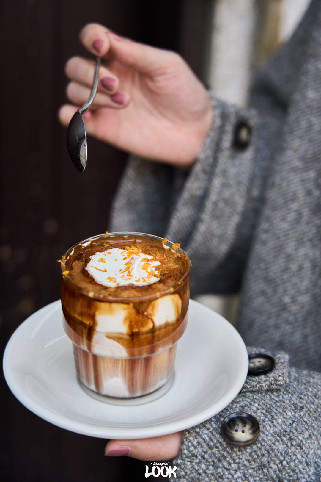 「虎斑橘」这一杯橙子味十足的长得有点像Dirty,长得也有点像维也纳咖啡,一时之间很难归类的一个品种。最上方撒的橙皮味道很鲜明,整体饮品的口感很丰富。