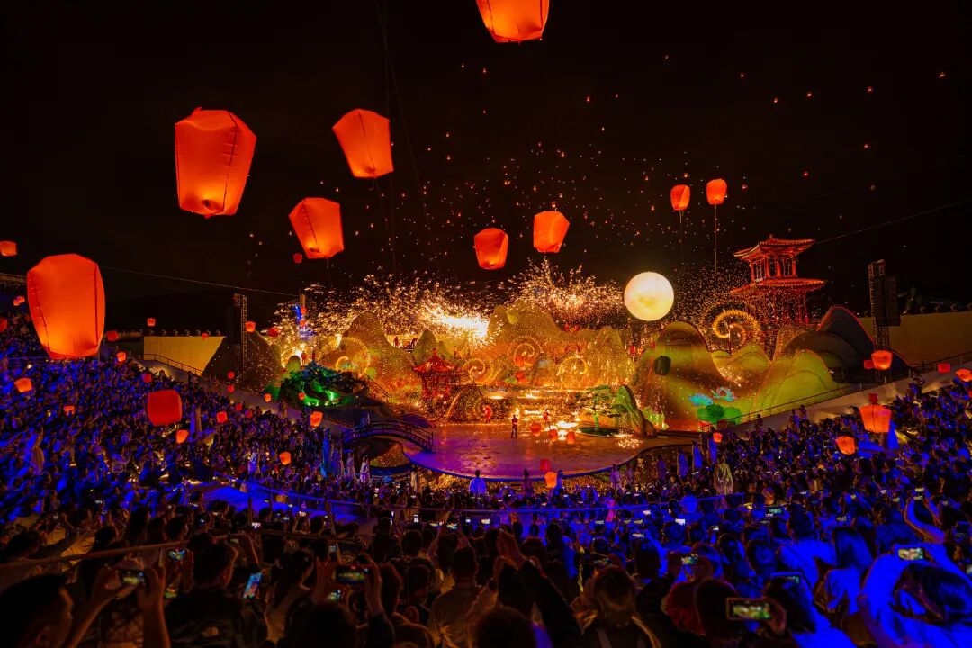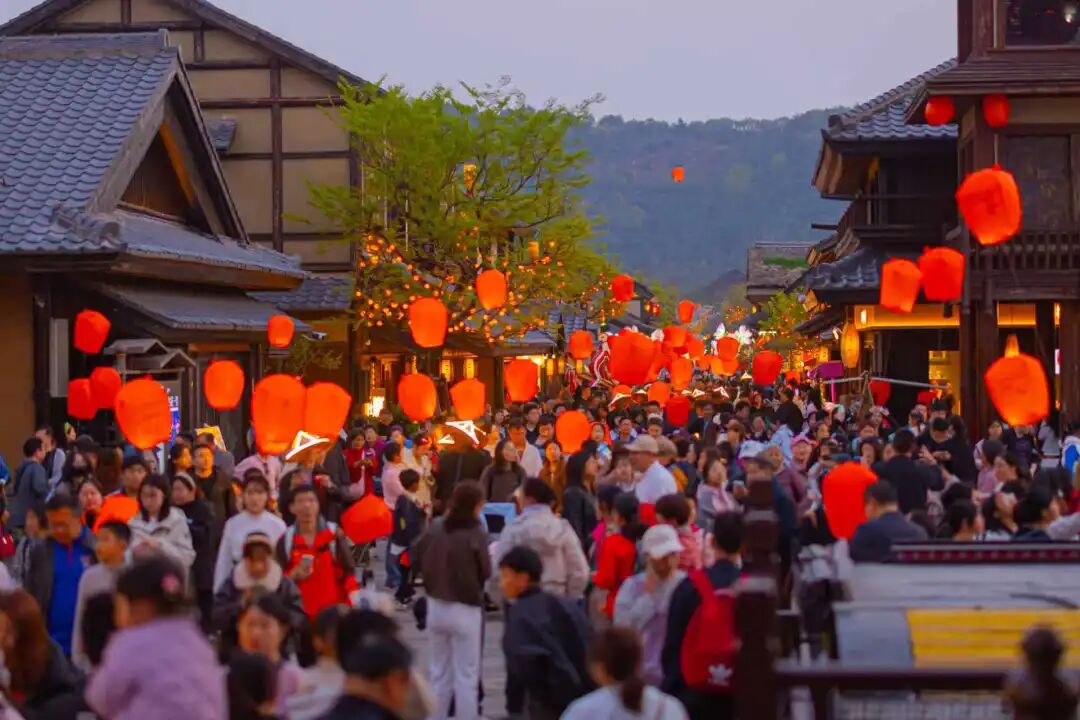 夜间文旅消费成为了重头戏,拈花湾《拈花许愿》沉浸式演艺,自4月1日首演以来,花海许愿广场场场爆满、座无虚席,峰值客流全天达1.8万人次,夜间入园量占全天的70%。