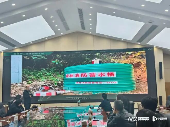 上饶市林业局防火科科长万强介绍“智慧蓄水池”系统。