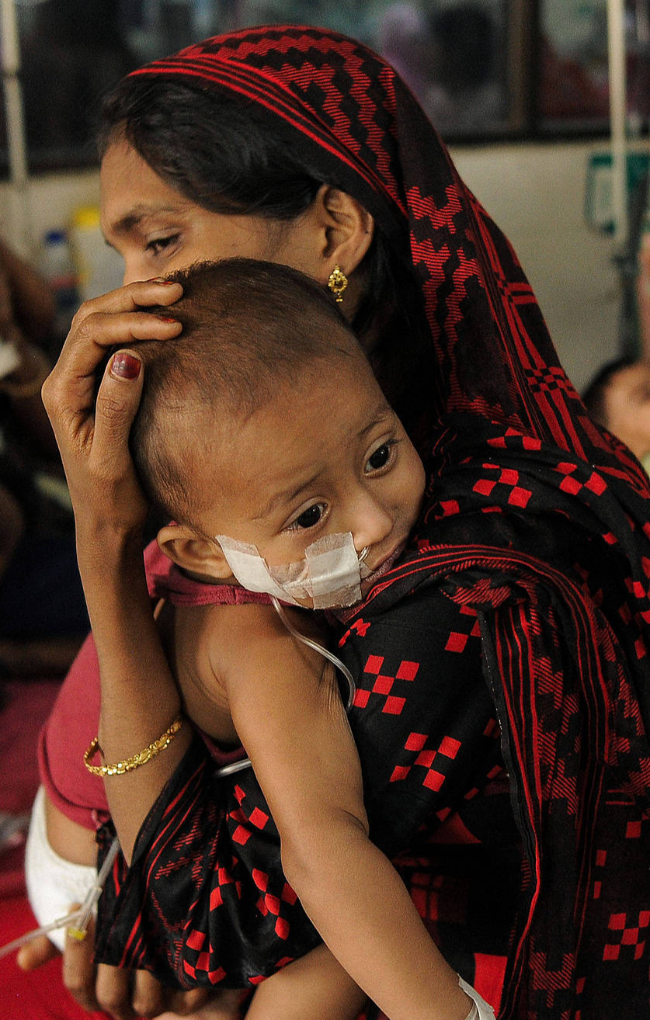 当地时间2026年4月6日,孟加拉国达卡,一名儿童在传染病医院接受麻疹治疗。当地多家医院因儿科病例增加面临越来越大的压力。视觉中国 图