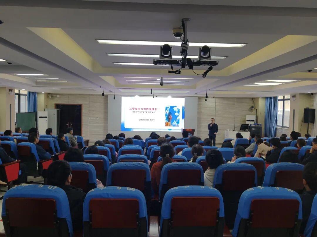 讲座伊始,蒋老师引导家长反思自身焦虑,指出学业压力是青少年心理健康的重要风险因素。他通过“动物学校”寓言阐释因材施教的必要性,并从学校、家庭及个人发展需求三个维度,剖析学业压力的主要来源。针对这些问题,蒋老师提出六大应对策略,整场讲座兼具专业理论与生活案例,家长们专注聆听、认真记录,不时点头赞许。