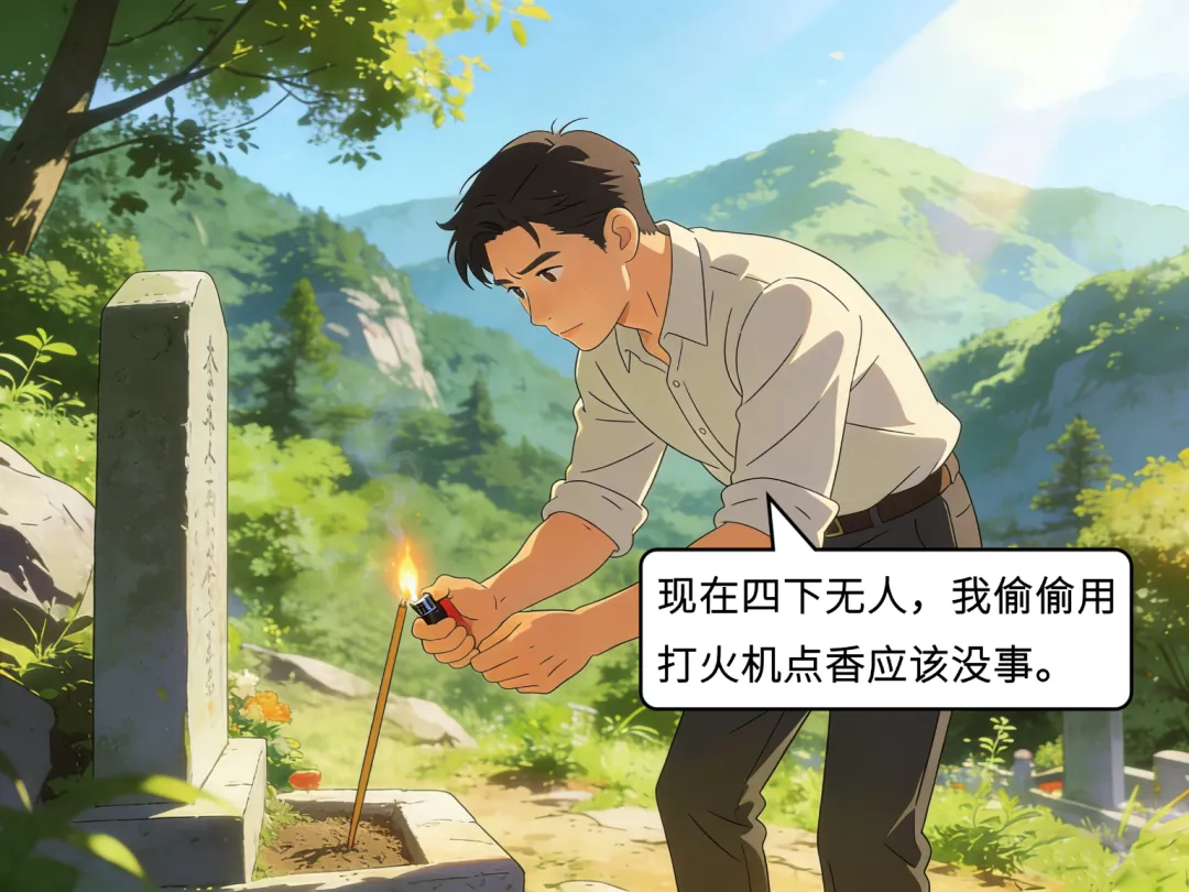 2025年3月下旬,正值清明前夕,小吴与亲友约定上山扫墓。进山时,护林员告知小吴,林区严禁一切明火,违者需承担法律责任。