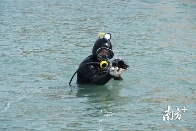 海胆品质与时节紧密相关。每年3、4月,海水温度回暖,位于捷胜镇龟龄岛等海域的汕尾紫海胆,迎来产卵前的黄金蓄积期。