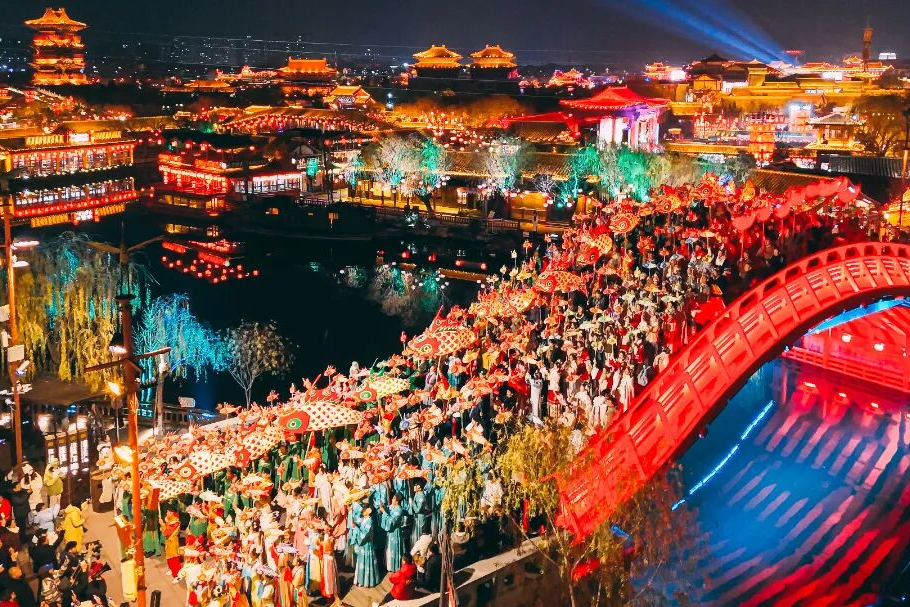 千年之后,还是这片土地,河南开封清明上河园里,人潮涌动,笑语欢声。
