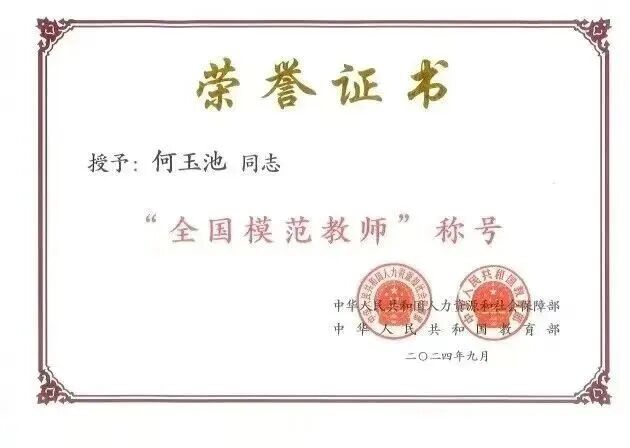二十余载春风化雨,桃李芬芳。何玉池先后培养硕士生近30人、博士生6人,招收博士后研究人员3人,指导50余名本科生开展科研训练,其中20余人获省级以上奖励,大批学子考入北京大学、武汉大学、中山大学等名校深造。其指导的博士生黄宝生,融合水产与植物研究开创无水运输新方向,成果获央视追踪报道。她提出“四科并举”融合培养提升研究生职业发展力的教育理念,相关论文于2024年发表于《光明日报》,为研究生教育改革提供了宝贵范本。2024年9月,何玉池被教育部授予“全国模范教师”荣誉称号。