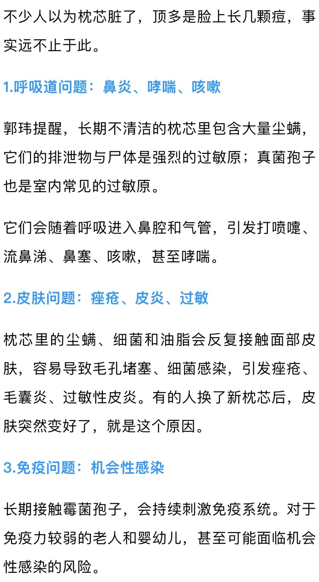 枕芯不清洁,伤害一连串
