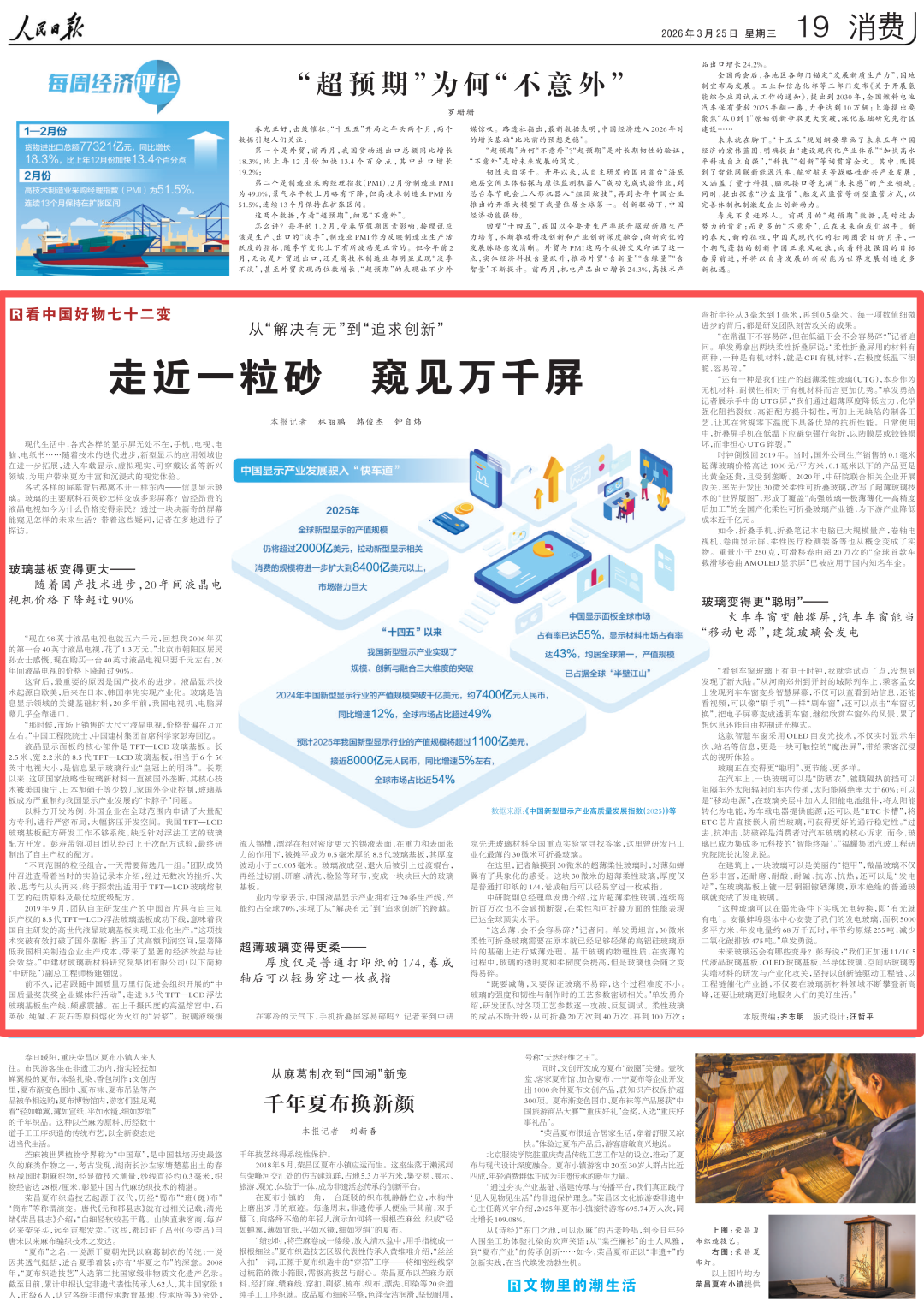 各式各样的屏幕背后都离不开一样东西——信息显示玻璃。玻璃的主要原料石英砂怎样变成多彩屏幕?曾经昂贵的液晶电视如今为什么价格变得亲民?透过一块块新奇的屏幕能窥见怎样的未来生活?带着这些疑问,记者在多地进行了探访。