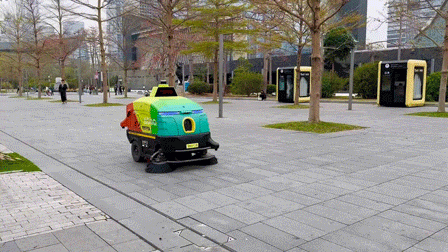 注意看!这名叫“小洁”的AI环卫机器人正在中心书城一旁的街道沉稳地清洁路面,你别看它长得“平平无奇”,在这座城市的保洁工作中,它发挥了举足轻重的作用。