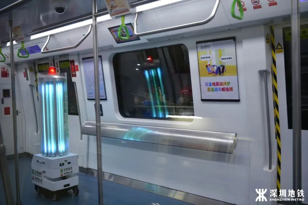 此外,地铁车厢内的智能消毒机器人自动高效地完成列车的消毒工作,为大家的出行提供卫生保障。