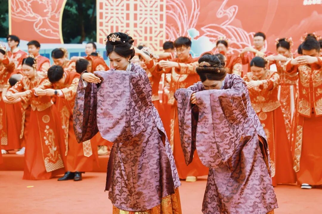 从妆造、中式礼服,到跟拍摄影、专属婚车、集体颁证、冷餐会及伴手礼——新人无需为任何环节奔波付费。这是大渡口送给新人的一份“零负担”婚礼礼物。