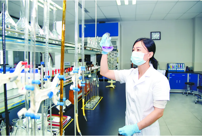 华美节能科技集团有限公司的研发人员正在对原材料进行容量分析 。(资料片)