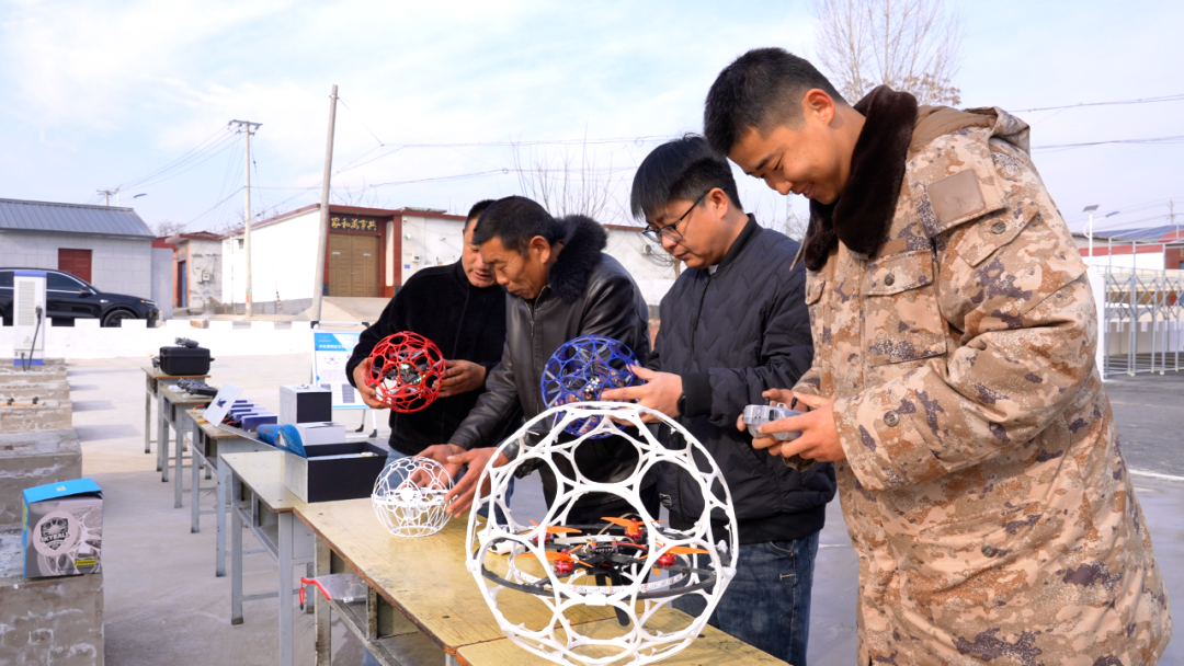 深耕土地的同时,双庙村的目光也投向了天空。在省发改委的指导帮扶下,无人机组装项目落户讲武城镇,双庙村敏锐抓住机遇,积极组织村民参加培训,全力打造“无人机特色小镇”。目前,已建成标准化无人机足球赛场一处、实训场地两块,逐步形成“研发适配+竞技体验+田间应用”的产业闭环。低空经济,正成为双庙村撬动高质量发展的新支点。