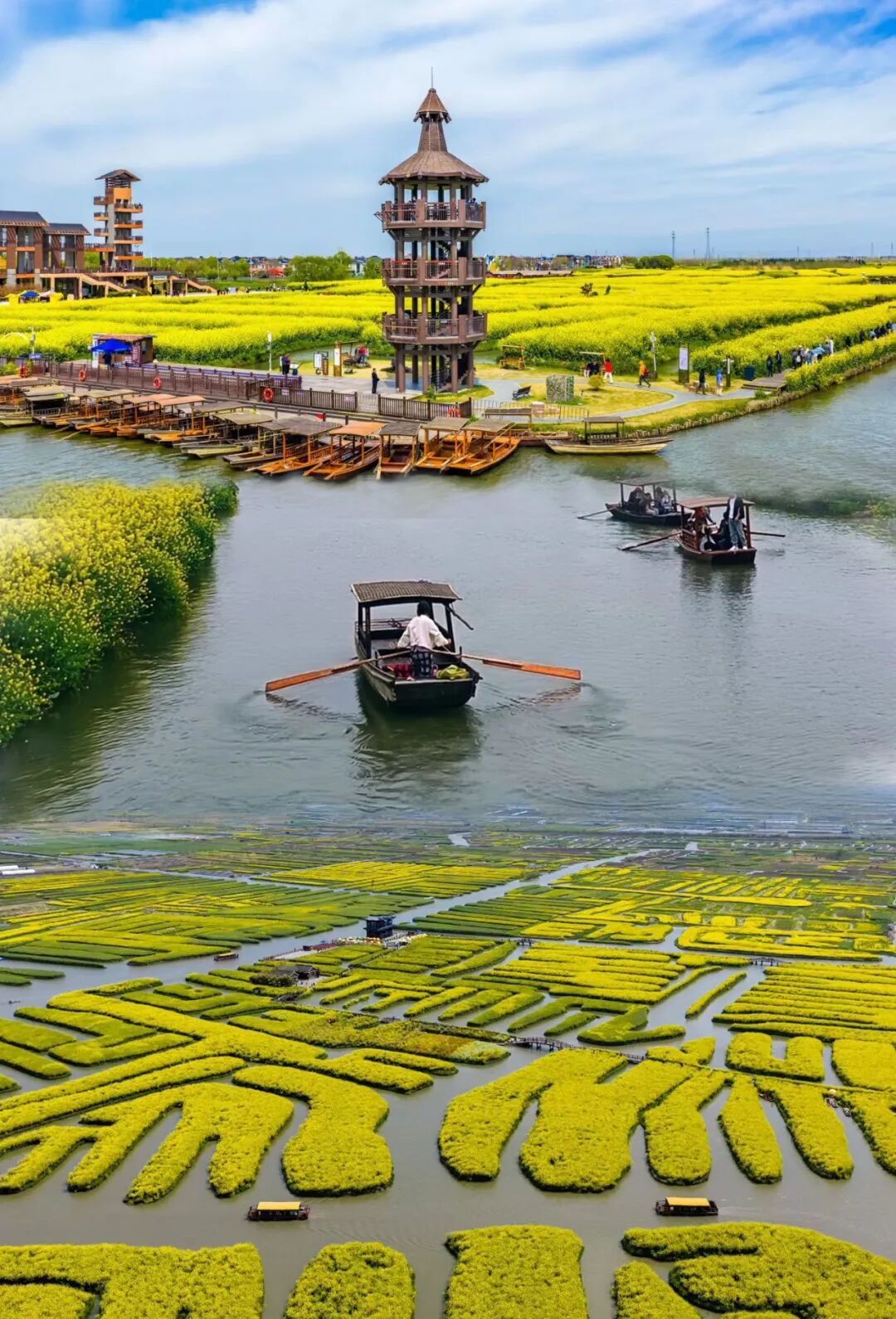 不似桃温梨淡,千垛油菜花自登场便自带高光。以鎏金铺尽春韵,恰如央视所赞:“水上花海如画,垛田春景如画”,寸寸光影皆藏治愈。