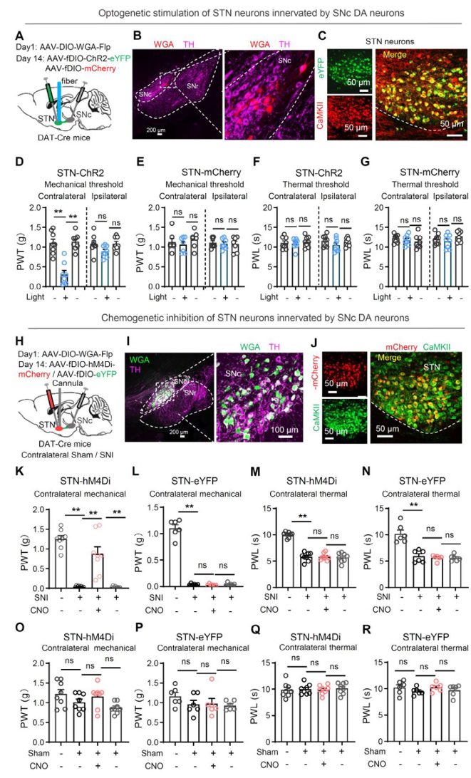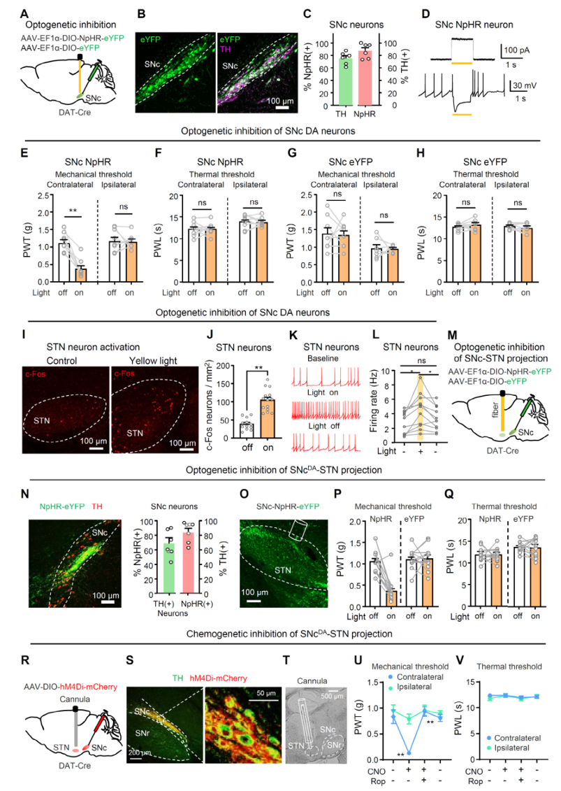 因此,SNc→STN多巴胺通路是一条专门调控对侧机械痛的镇痛环路。