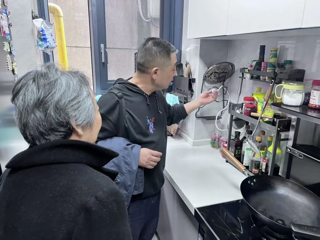电工师傅们是社区里忙碌的“跑腿人”:他们弯腰钻进厨房,仔细检查电表、插座,还把安全扶手牢牢钉进老人家的卫生间。每一次拧紧螺丝,都是在给平安“加码”;每一句“注意用电”,都是放心不下的牵挂。当老人扶着新扶手,笑着说“这下放心了”,师傅们的汗水也化作了暖意。