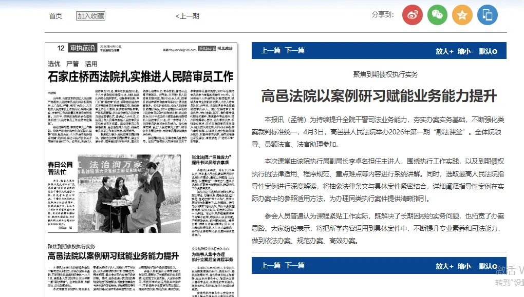 媒体采撷丨《河北政法报》刊登——聚焦到期债权执行实务 高邑法院以案例研习赋能业务能力提升