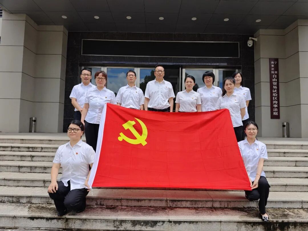 陈福林(左一)与宁波海事法院自贸区法庭同事合影