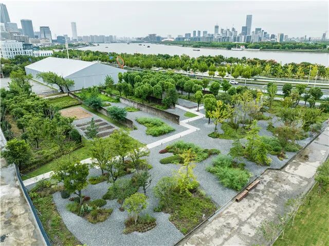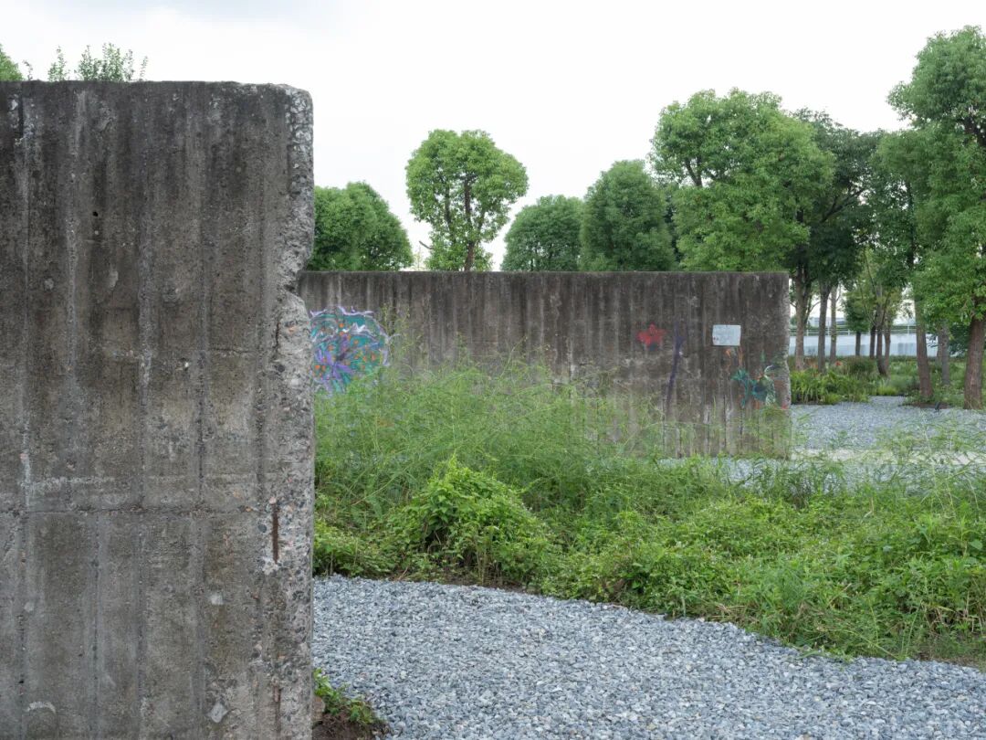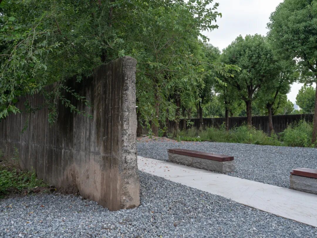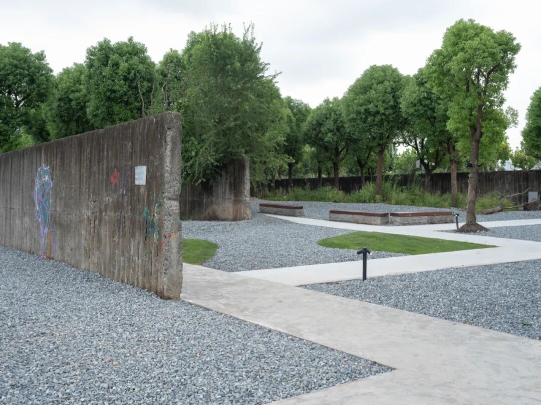 景观设计以江南园林“借景”手法,利用场地内保留下来的堆场隔墙,构建了“平行花园”。在园林专家的提示下,这些墙就抽象成了苏州园林中长廊的格挡,共六堵墙、五个廊框,除了没有中式的廊檐,非常传神地传达了苏州园林“一步一景”“移步换景”的味道。园林的精致之处隐藏在野生的粗犷之中。