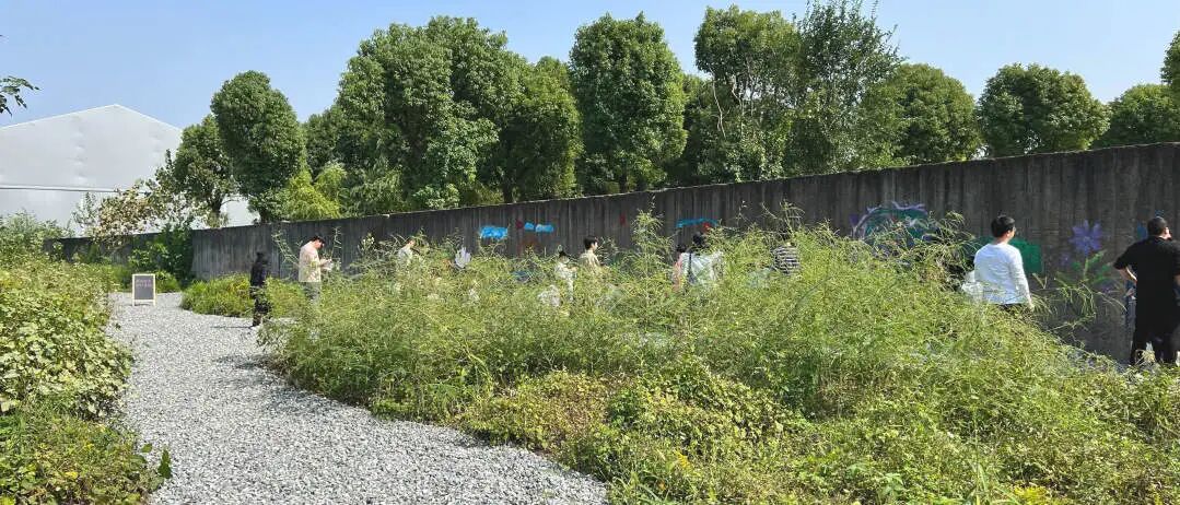 在场地踏勘与梳理阶段,项目团队发现场地荒野生境背后隐藏着严重的外来入侵植物问题,这也成为《复园》生态修复的核心切入点。现场排查出加拿大一枝黄花、三叶鬼针草、大狼杷草等多种入侵物种植物,这类物种兼具化感作用与强悍繁殖能力,严重破坏场地生物多样性、干扰群落自然演替。团队意识到,入侵物种是城市化闲置荒地的共性问题,更是“共栖”议题的警示性红线。为了保留场地内野生的本土植物,无法直接大面积铲除,项目与施工团队集中人力,逐片反复辨识,一株株斩草除根,先后清理了五次,并持续在养护过程中保持监测频度,一经发现,立即清理。