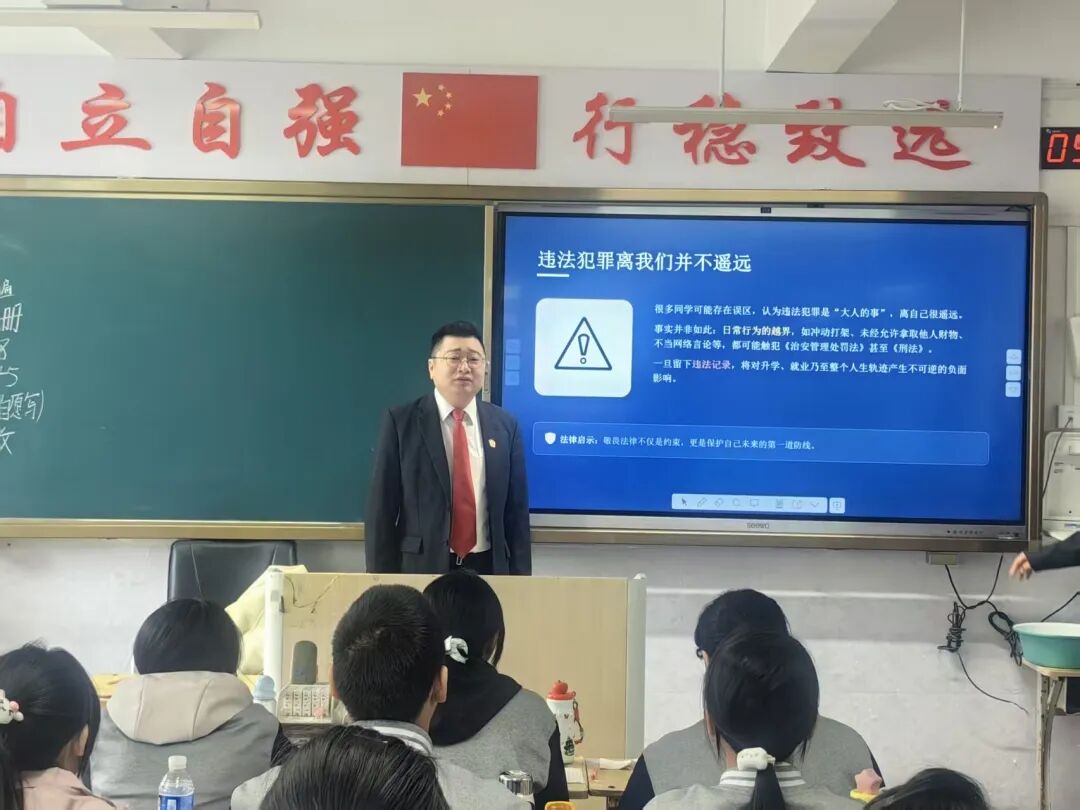 集中宣讲结束后,赵世奇走进各班级,开展小范围、针对性更强的法治辅导。根据不同班级学生的年龄特点以及日常相处中暴露出的微小矛盾、行为偏差,进行“点对点”法律指导。在班级课堂上与学生近距离围坐交流,耐心解答学生提出的法律疑问,并结合班级实际发生的典型小事,将法律知识细化到学习生活的具体场景中。这种面对面、心贴心的互动方式,让法治教育更加鲜活、可感,真正实现了普法宣传全覆盖、无死角。
