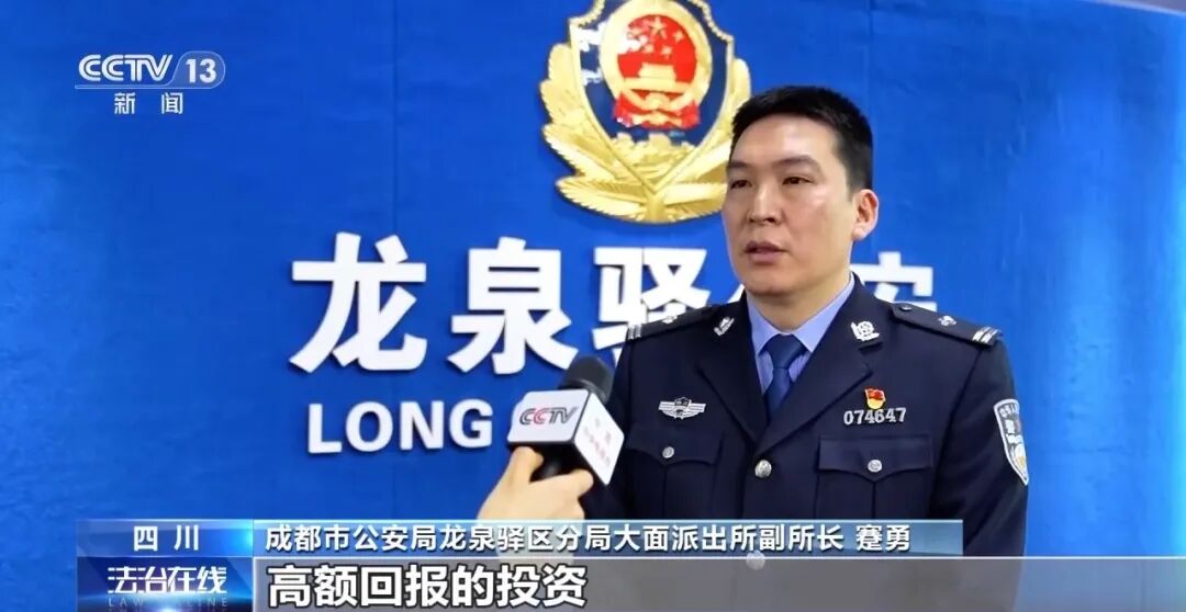 成都市公安局龙泉驿区分局大面派出所副所长蹇勇:任何稳赚不赔、高额回报的投资,都是诈骗。遇到陌生人大方交订金、主动拉家常、推荐投资的情况,一定要提高警惕,切勿轻信。