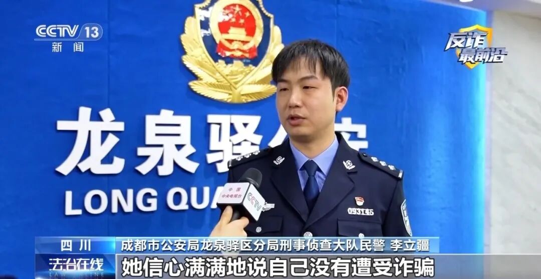 成都市公安局龙泉驿区分局刑事侦查大队民警 李立疆:我们电话联系了她,她信心满满地说自己没有遭受诈骗,并愿意到公安分局来配合工作。
