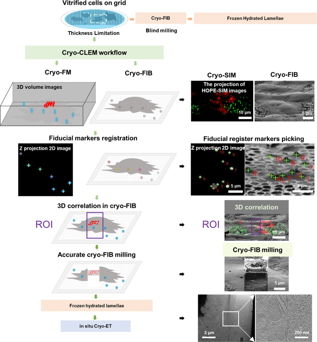 图1. 基于冷冻结构光照明显微镜(HOPE-SIM)的冷冻光电关联成像(cryo-CLEM)流程
