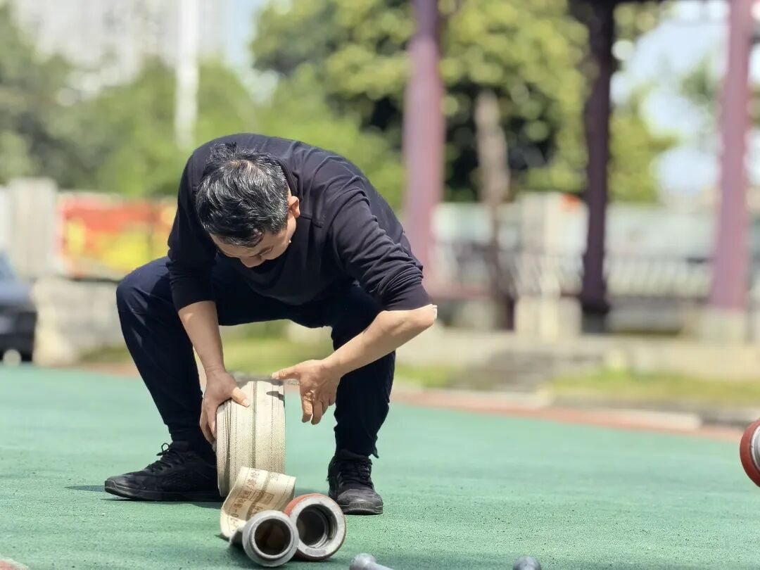 在技能实操中,消防教官手把手开展教学,围绕消防器材装备操作、个人防护装备使用与维护等核心内容细致讲解、现场示范,参训民警认真记录、踊跃提问,逐人上手练习、反复打磨动作,确保每一项操作规范标准、熟练掌握。模拟火灾扑救、狱地协作应急救援演练等环节,参训民警严格按照指令分工协作,从水带快速铺设、水枪精准操作,到现场人员搜救、伤员规范转运,每一个流程都力求高效精准,通过实战化操练,民警们的应急救援流程把控能力和器材实操熟练度得到显著提升。
