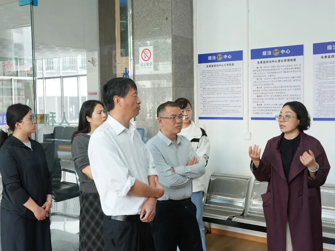 在县综治中心,邓副院长一行实地了解了中心机制建设、人员配备、矛盾纠纷分流调解相关情况。