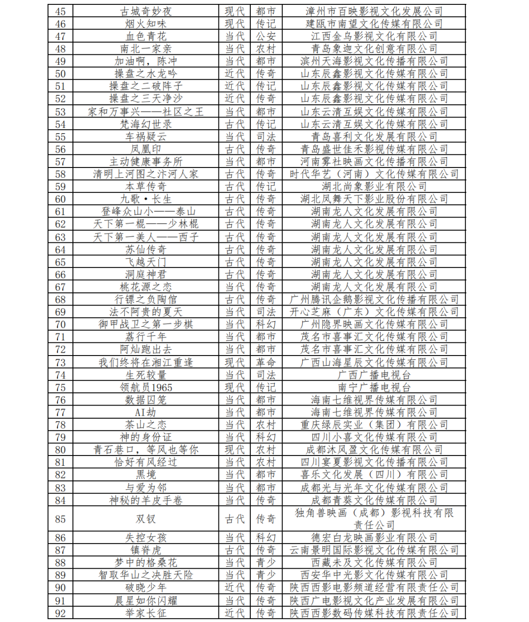 · 当代背景作品55部,占比56.70%,稳居绝对主力,贴近现实生活、聚焦当下情感与社会议题,持续贴合大众观看偏好;