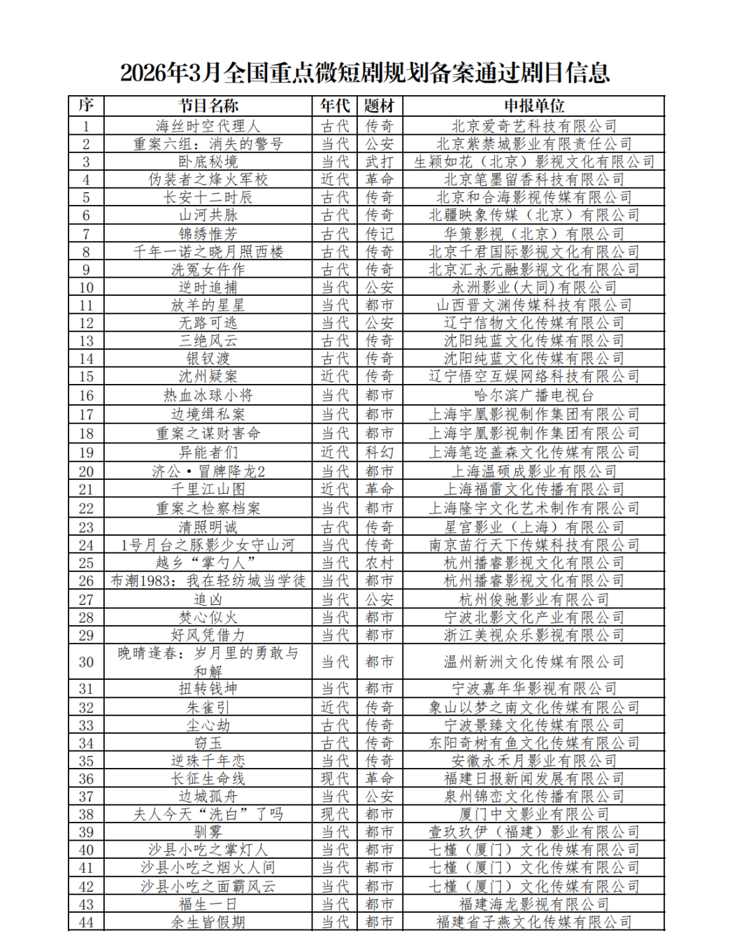 微短剧备案月报:2026年3月97部过审,传奇题材首超都市题材