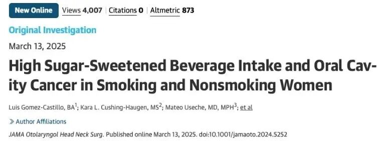 《英国医学会耳鼻咽喉头颈外科杂志》上发表的一项研究发现,不论是否抽烟、喝酒,常喝含糖饮料都可大大增加口腔癌风险。