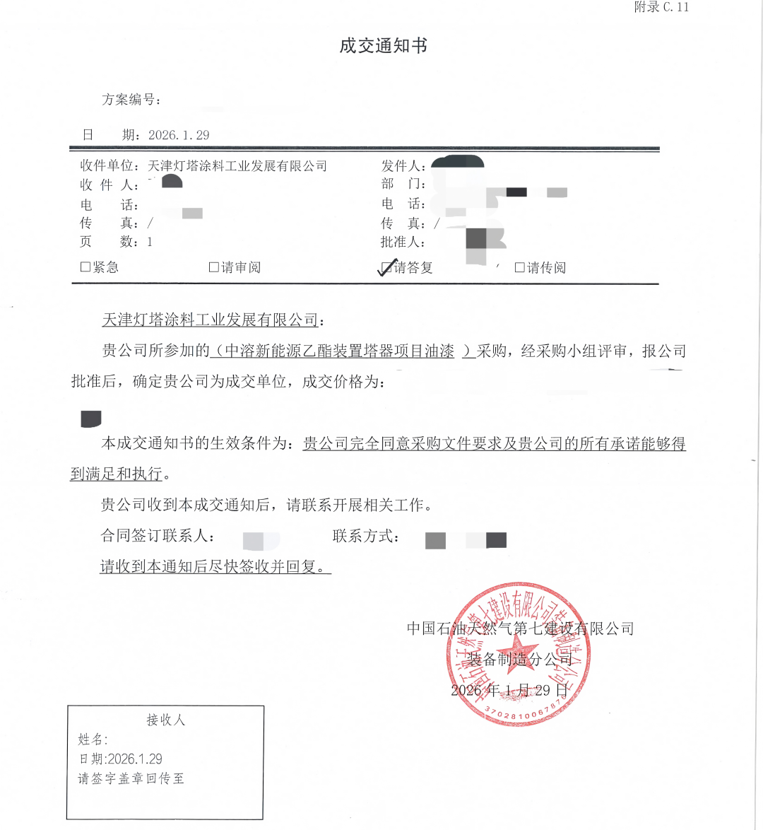 北新涂料成功中标亚洲在建最大万吨级跨海河桥项目、中国石油中溶新能源乙酯装置塔器项目