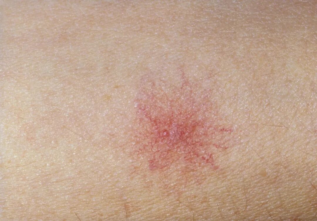 除了肝掌,还要留心一种叫“蜘蛛痣”的红点。它中间有一个红点,周围有向外辐射的细小血管,像一只小蜘蛛。用手指按压中心点,整个红痣会暂时消失,松开后又恢复原状。如果身上同时出现肝掌和蜘蛛痣,更要尽早检查肝脏。