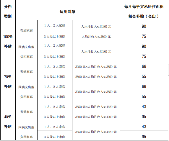 廉租住房租金配租补贴标准