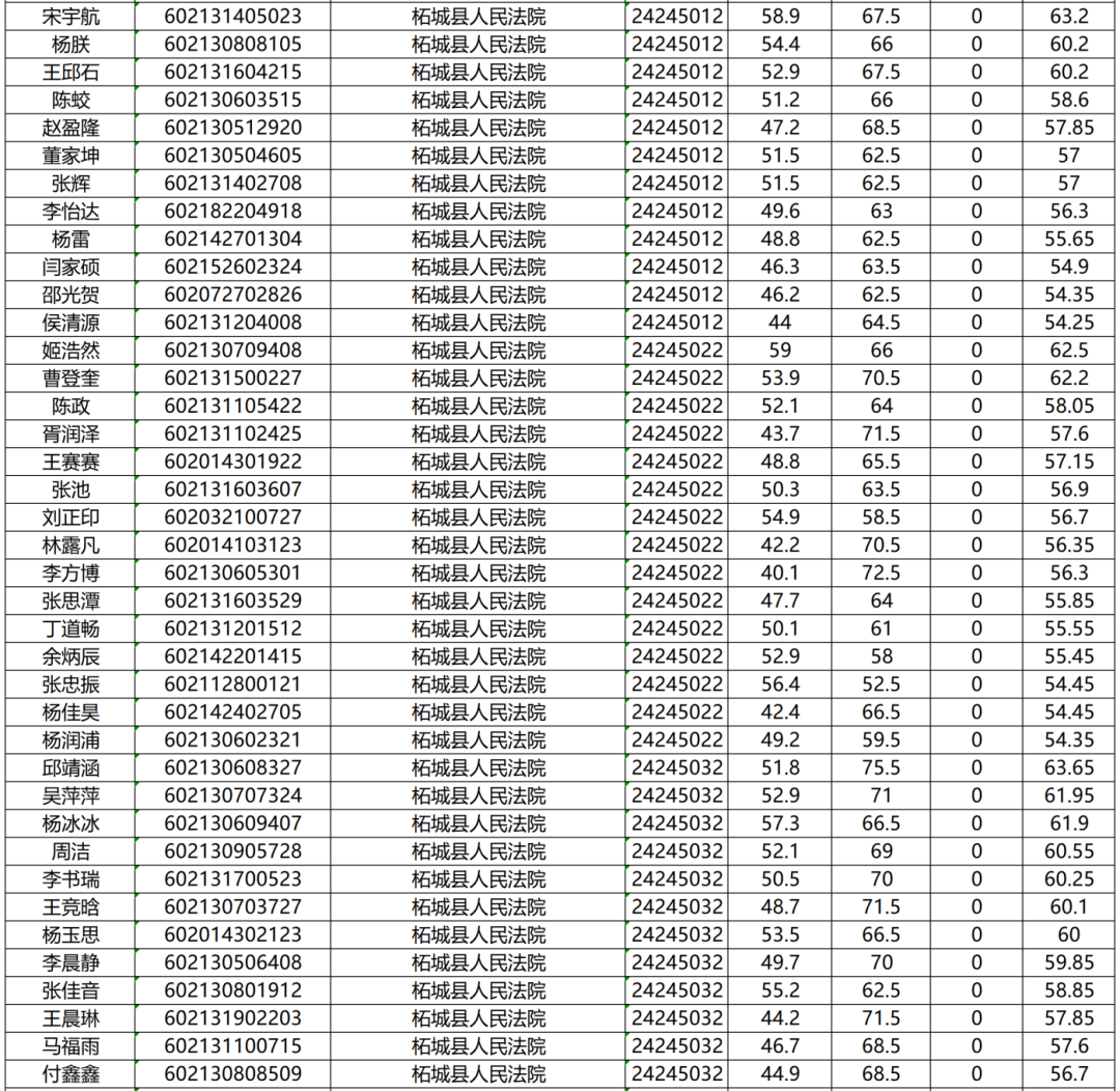 柘城县人民法院面试确认人员名单