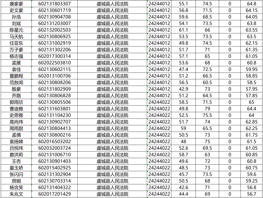 虞城县人民法院面试确认人员名单