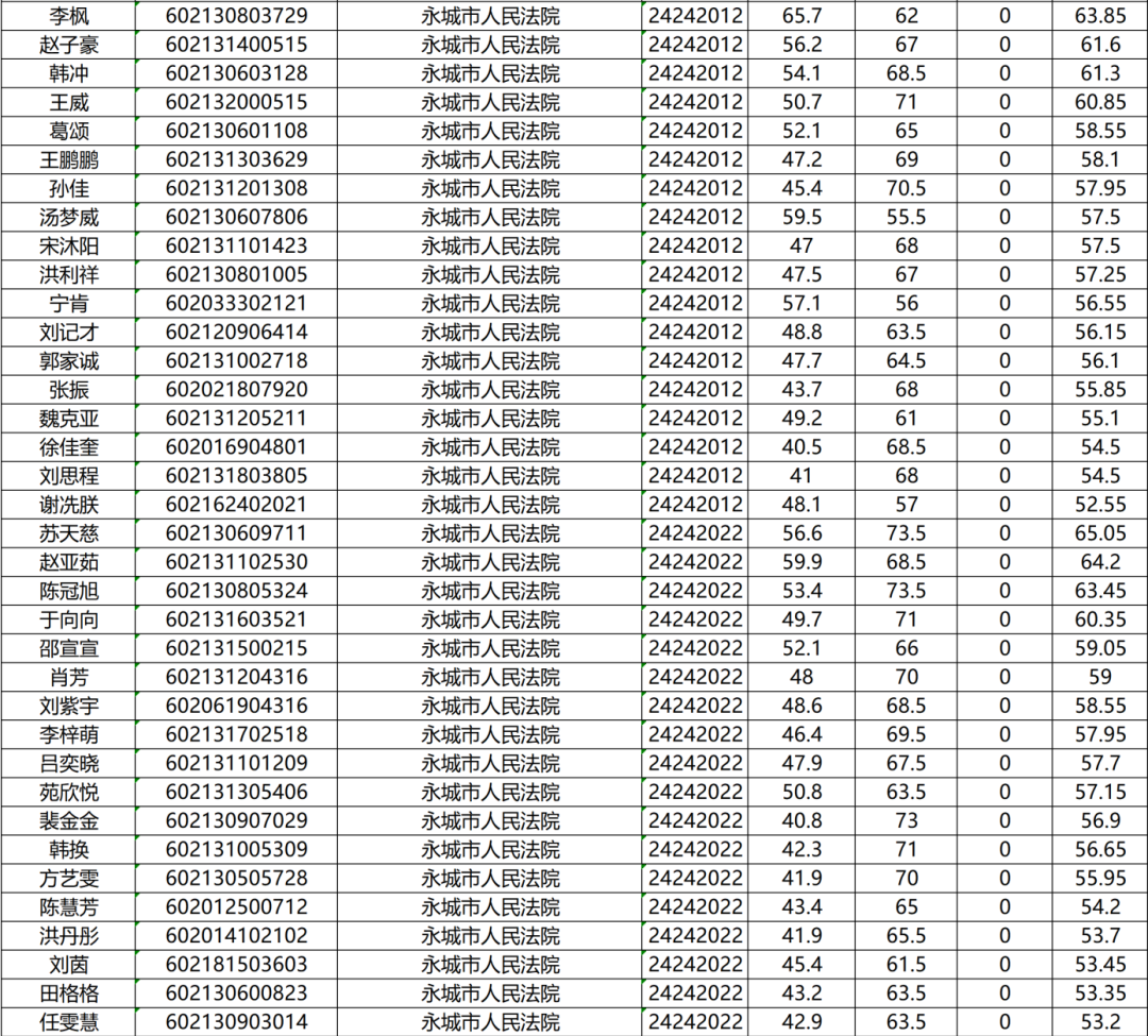永城市人民法院面试确认人员名单