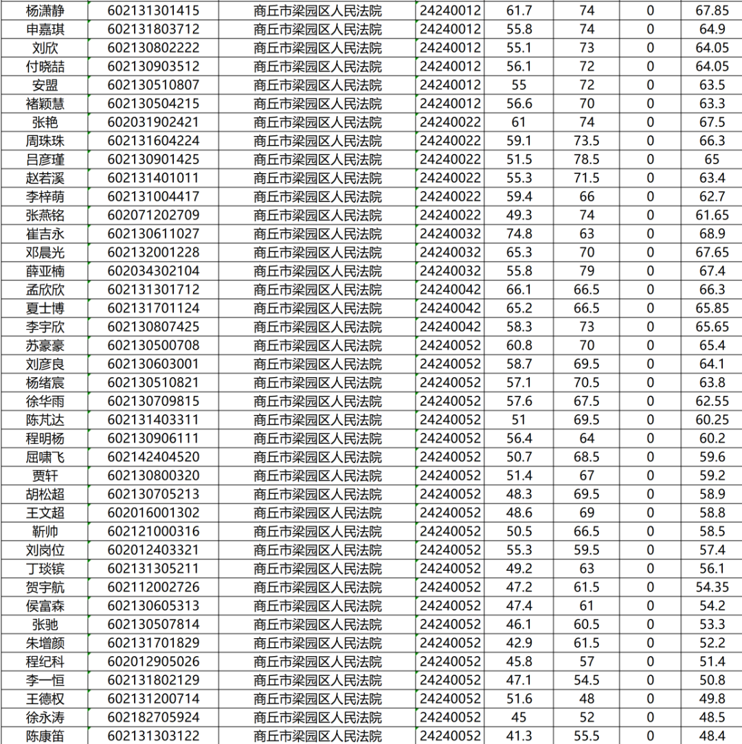 睢阳区人民法院面试确认人员名单